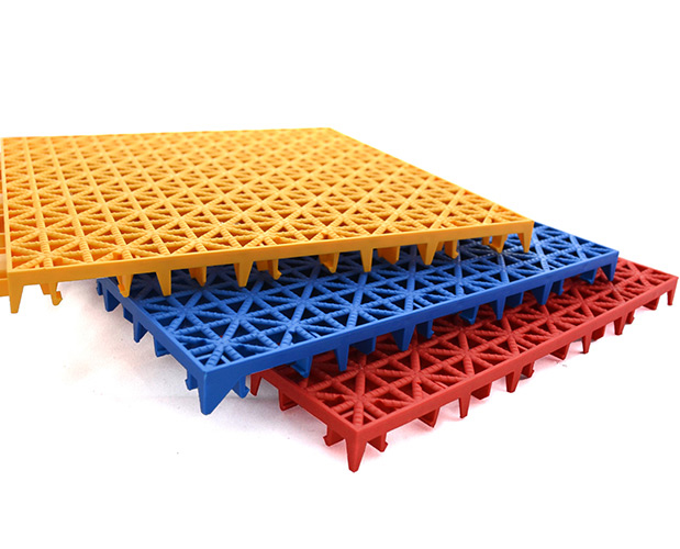The ball's response is quite real and more sensitive than on any other modular floor on the market, because the court is completely flat and the fixing point mechanism that makes it rigid.
